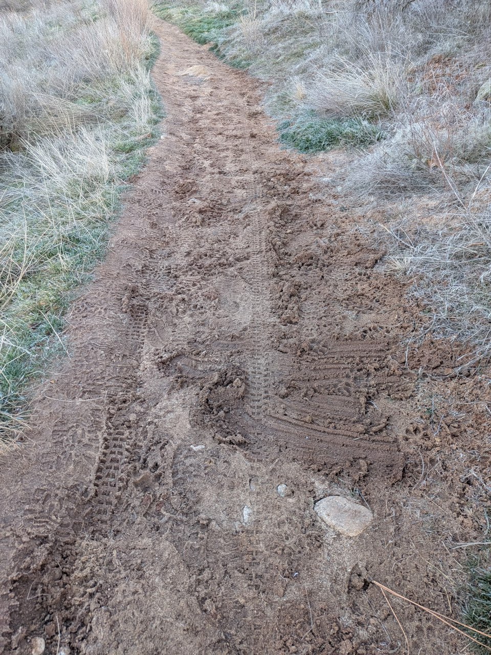 It hasn’t rained or snowed in well over a week, right? Trails should be dry and great to travel on, right? Wrong. The daily freeze-thaw temperature cycle continues to push sub-surface moisture to the trail surface where it softens and turns to mud as soon as temperatures climb near 30 degrees.