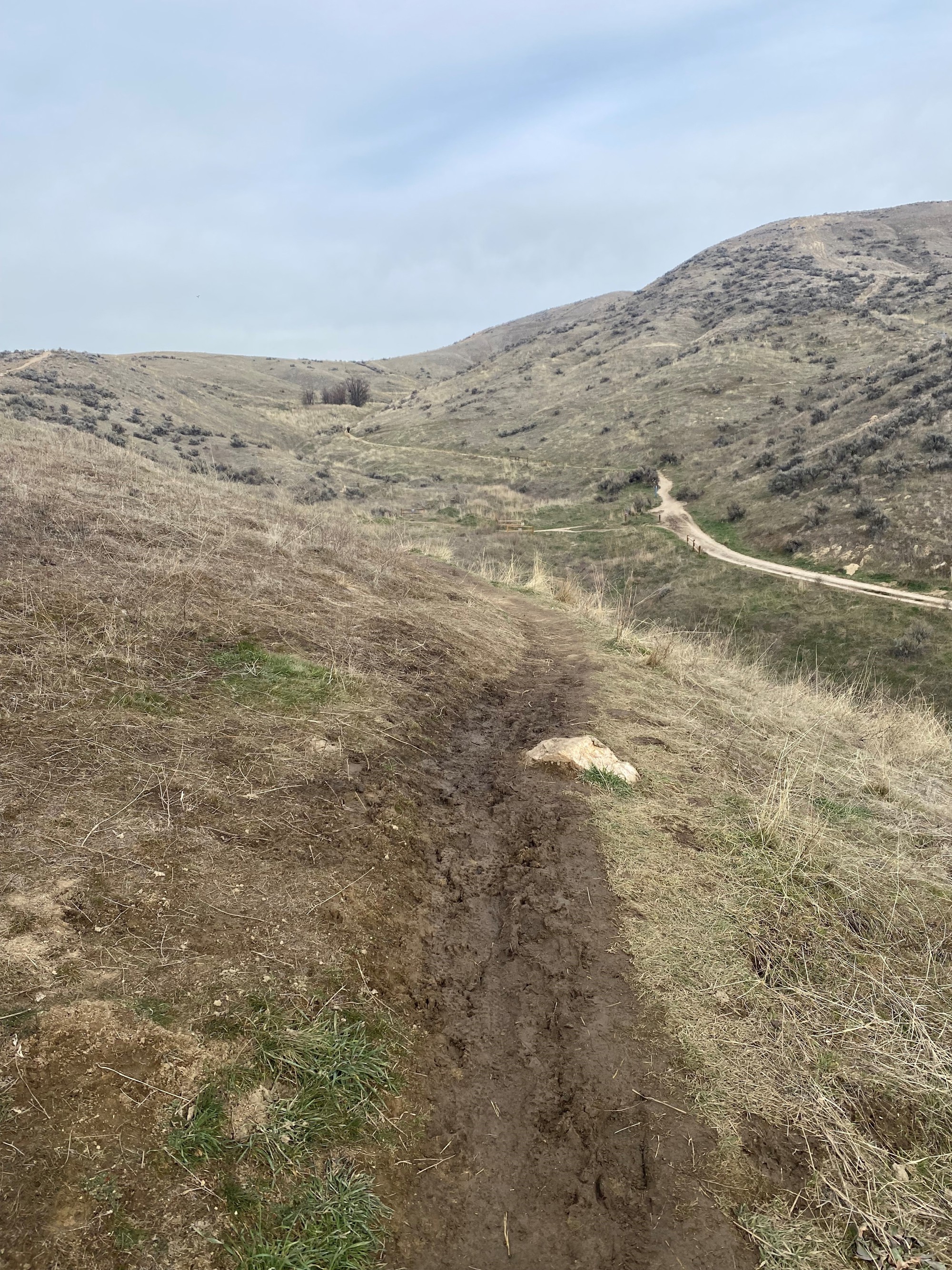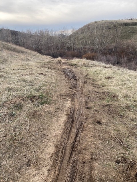 As we observed yesterday, trails around the lower foothills have dried to some degree, but are still left with plenty of gooey, muddy sections that are still prone to being impacted by trail use right now. It seems very likely that you may be starting out at a trailhead with good trails, but you could be finding yourself coming around a corner further up the hill and finding yourself staring down a long section of mud. Please make the decision to turn around at this point and avoid the temptation to continue through these very muddy sections. We found examples of this on trails in locations including the Military Reserve, Hillside to Hollow Reserve, Polecat, and out on the Hidden Springs trails. Because of this, we continue to list most of the trails in these areas as FROZEN EARLY THEN MUDDY on the Ridge to Rivers Interactive Trail Map (https://www.ridgetorivers.org/trails/interactive-map/).